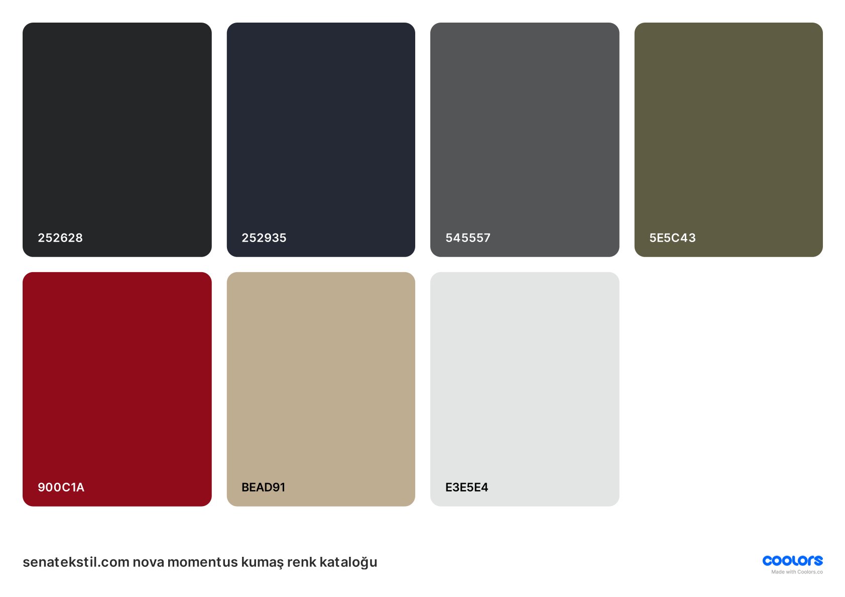 Nova momentus kumaş renk seçenekleri resimdeki gibidir. Eni: 150 cm / 1 top 100 metredir Sadece toptan satış mevcuttur.